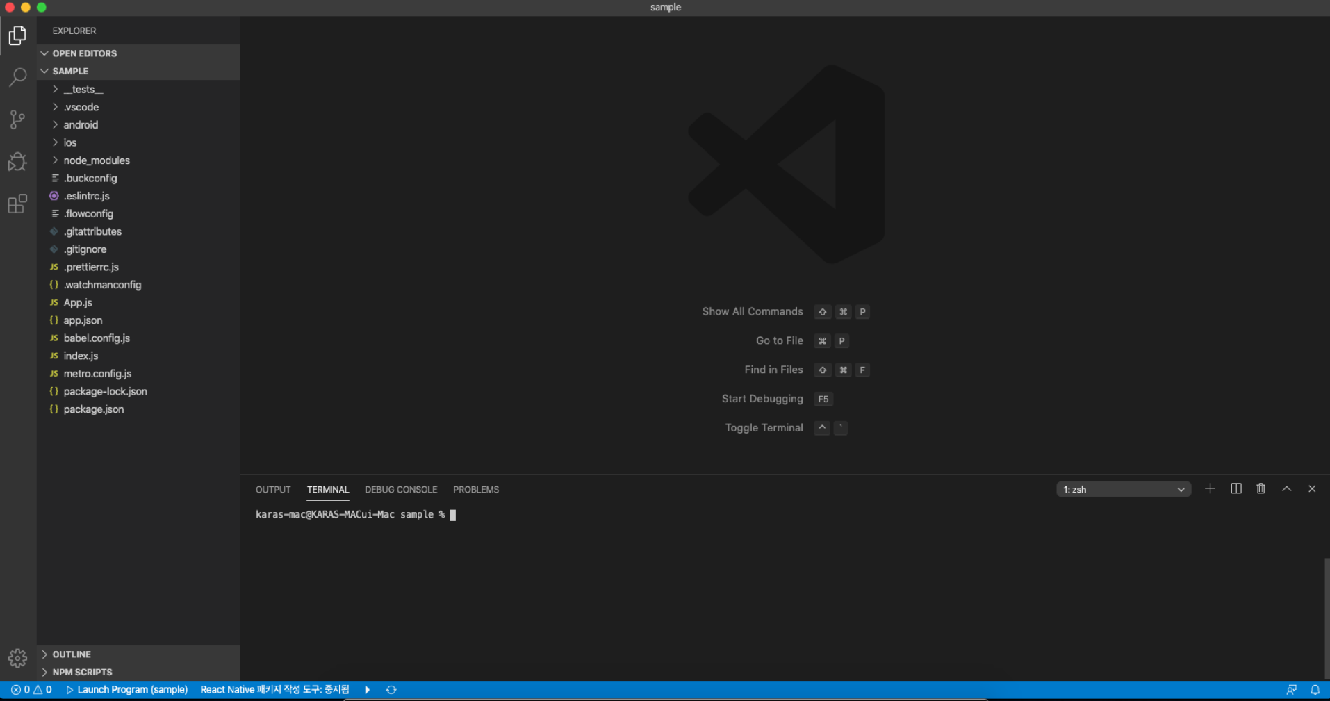 $ react-native init sample