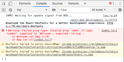 위의 예제와 비슷하게, 필수 props로 설정한 값에 값이 없다는 오류 메시지가 출력이 되는 것을 확인할 수 있습니다.